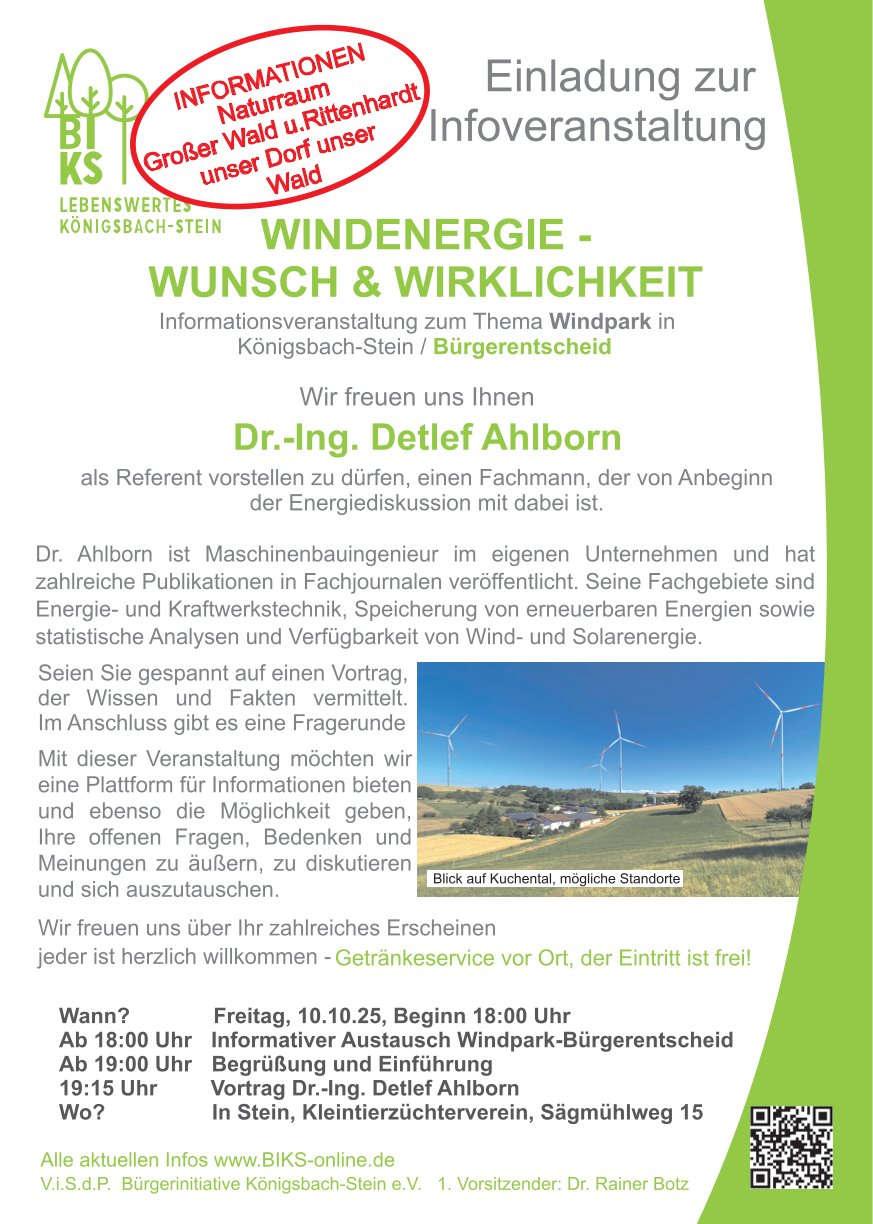 Am 9. November 2025 findet der Bürgerentscheid zum Windpark in Königsbach-Stein statt. Die Fragestellung lautet: